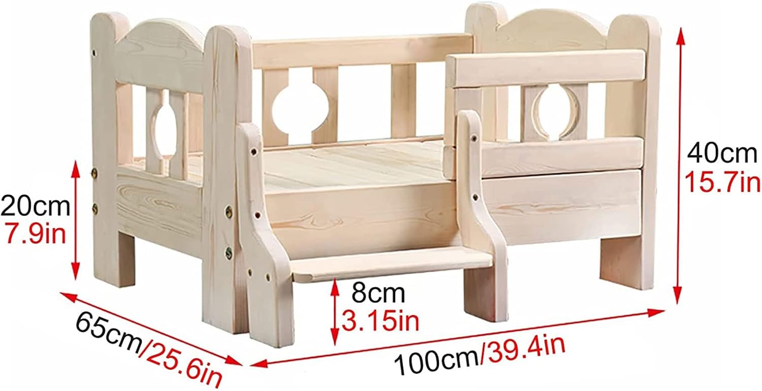 ◆ Specifications:- Material: Wood- Load: 68x48x40cm/26.8x18.9x15.7in, within 5kg; 80x60x40cm/31.5x23.6x15.7in, within 15kg; 100x65x40cm/39.4x25.6x15.7in, within 30kg.◆ Package: 1 × Pet Bed (Without mattress)◆ Features:- Safety fence design prevents pets from falling. - Polished smooth, easy to care, safe and secure, protect pet health.- Easy & Quick Assembly.◆ Notes:- Due to manual measurement and different measurement methods, please allow 1-3cm deviation, please understand.- Products are taken in kind, but due to light, equipment and resolution of the computer, there will be small color difference, in kind prevail.